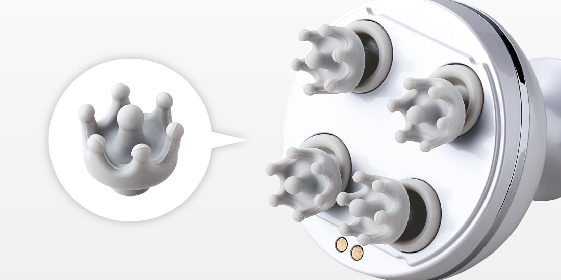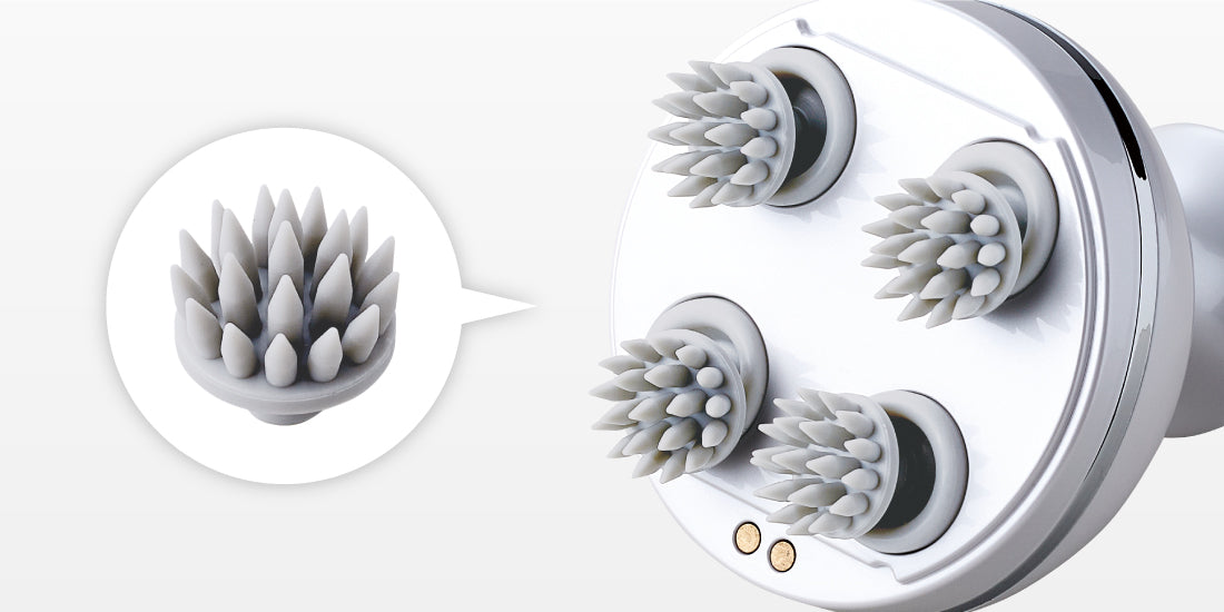 ブラシのツボ押し玉が連続的にやさしくつまみ上げて、硬くなりがちな頭皮を柔らかく。