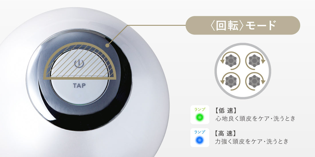 ※[低速回転]・・・心地良く頭皮をケアして洗います。