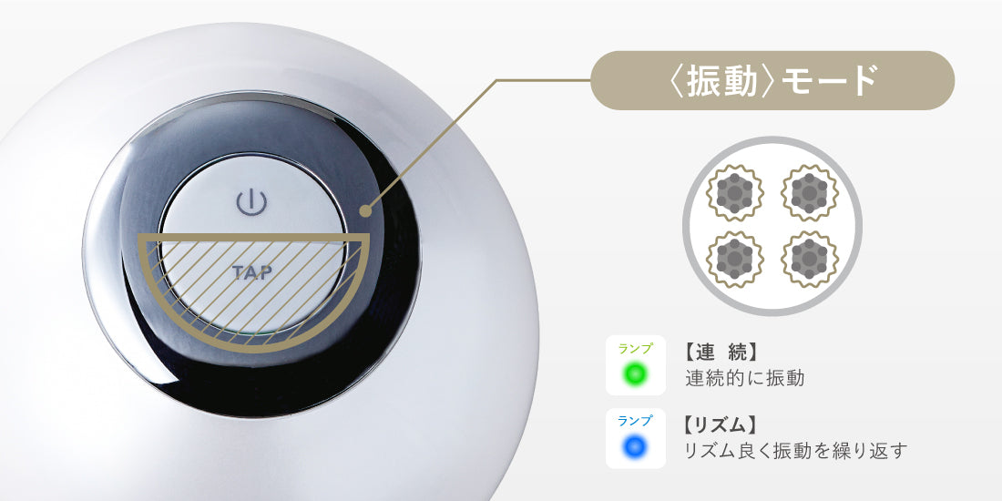 ※[振動モード:連続]・・・連続的に振動して頭皮を刺激します。