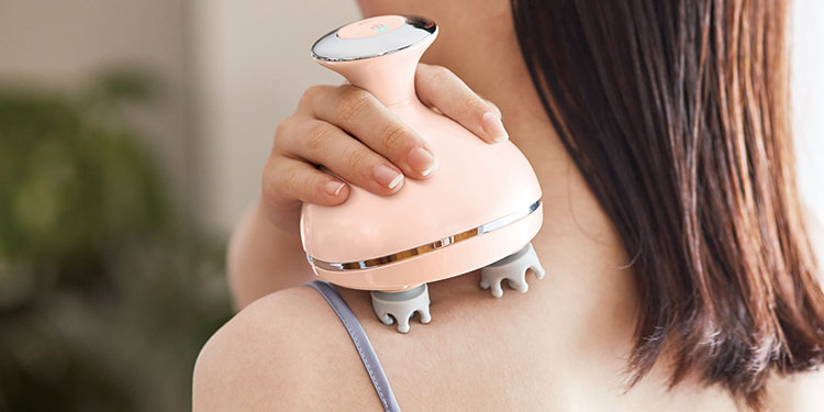 手ではほぐしにくい頭頂部、後頭部、側頭部にフィットする
